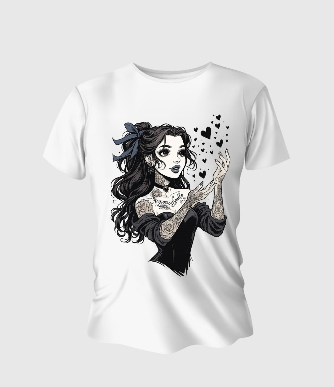 Show off your unique and bold style with our Belle tattoo T-Shirt! Made with high-quality materials and featuring a stunning tattoo design, this tee is perfect for making a statement. Express yourself and stand out from the crowd with this must-have addition to your wardrobe.
