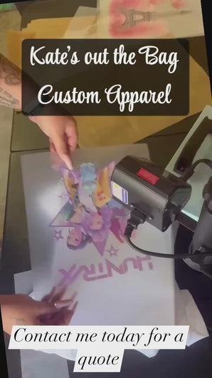 Professionally crafted by Kate’s Out The Bag Custom Apparel, your next must-have T- is ready to be designed. Let your imagination run wild and experience the magic of your perfect clothing piece.
